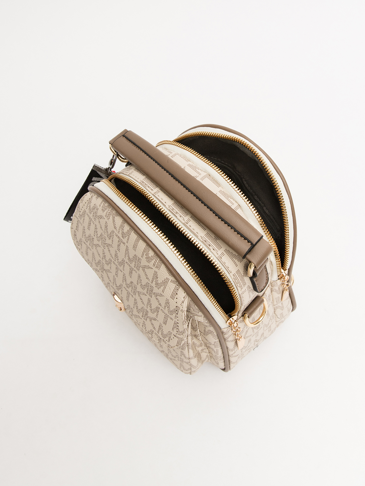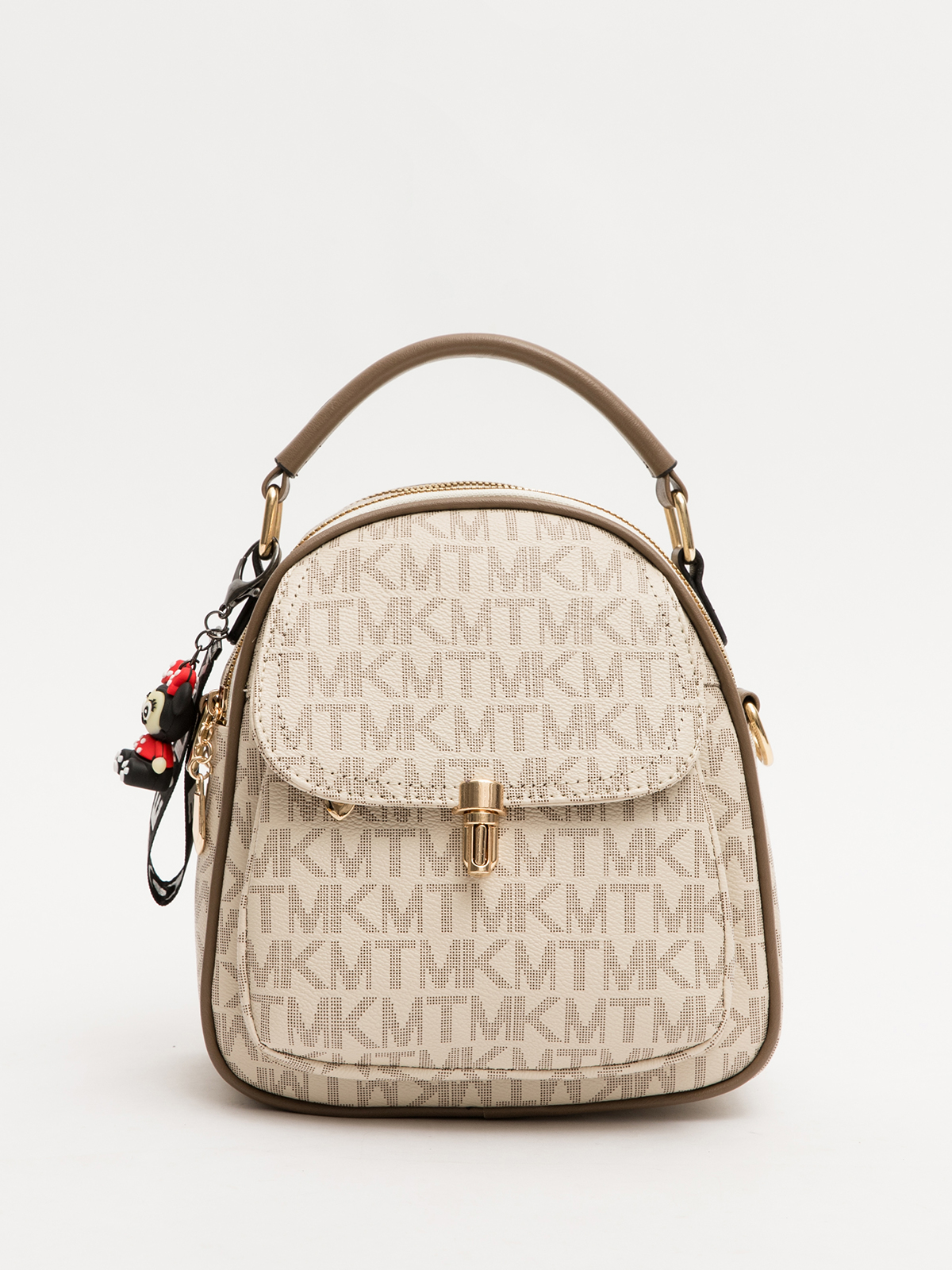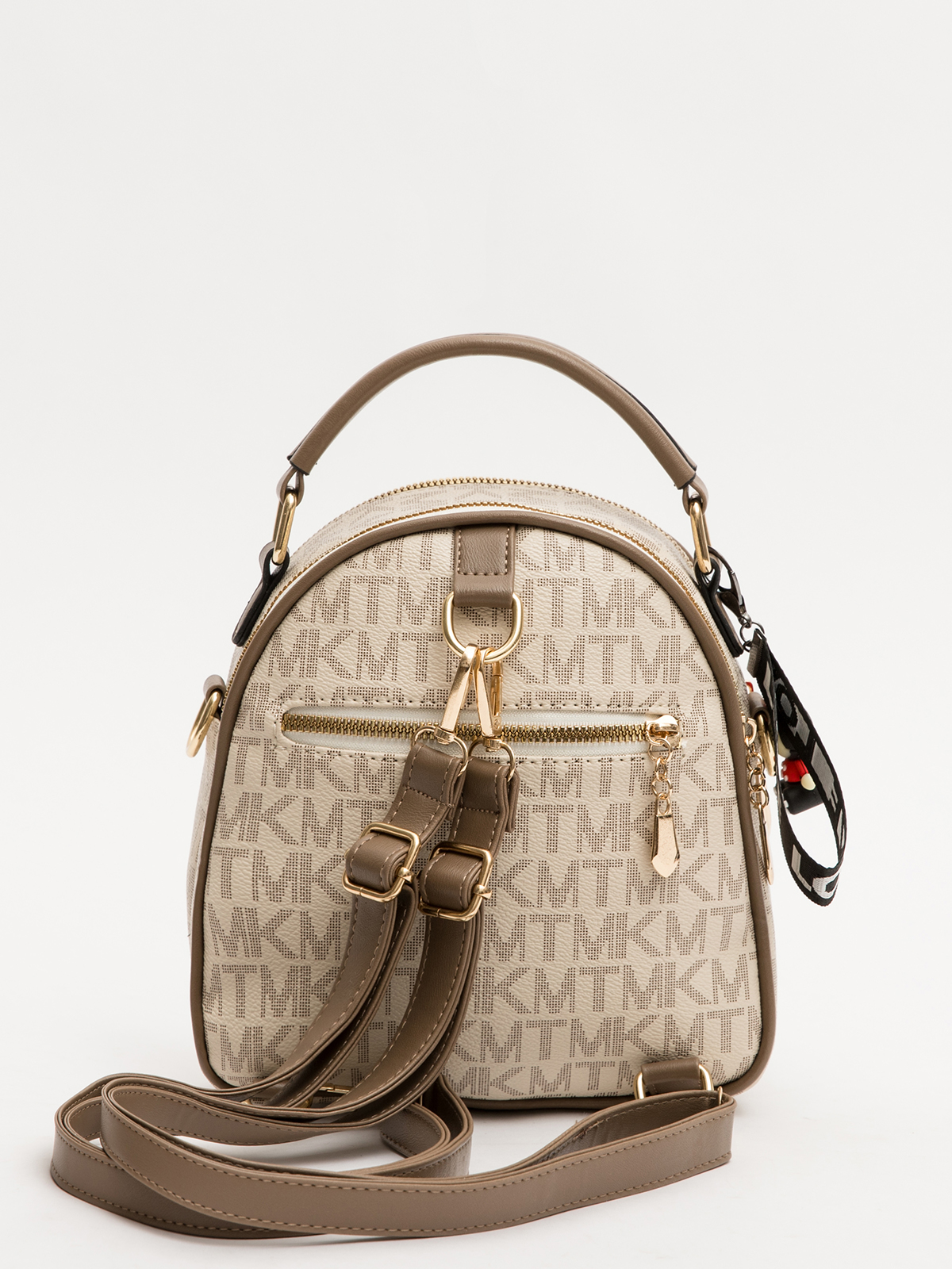 Сумка рюкзак из винилискожи габарита S имеет 2 отдела на молнии , два наружных кармана один из которых закрывается на молнию , второй на клапан с замком , один внутренний карман на молнии и один внутренний открытый карман . Сумку можно ность как рюкзак и как кросс-боди.