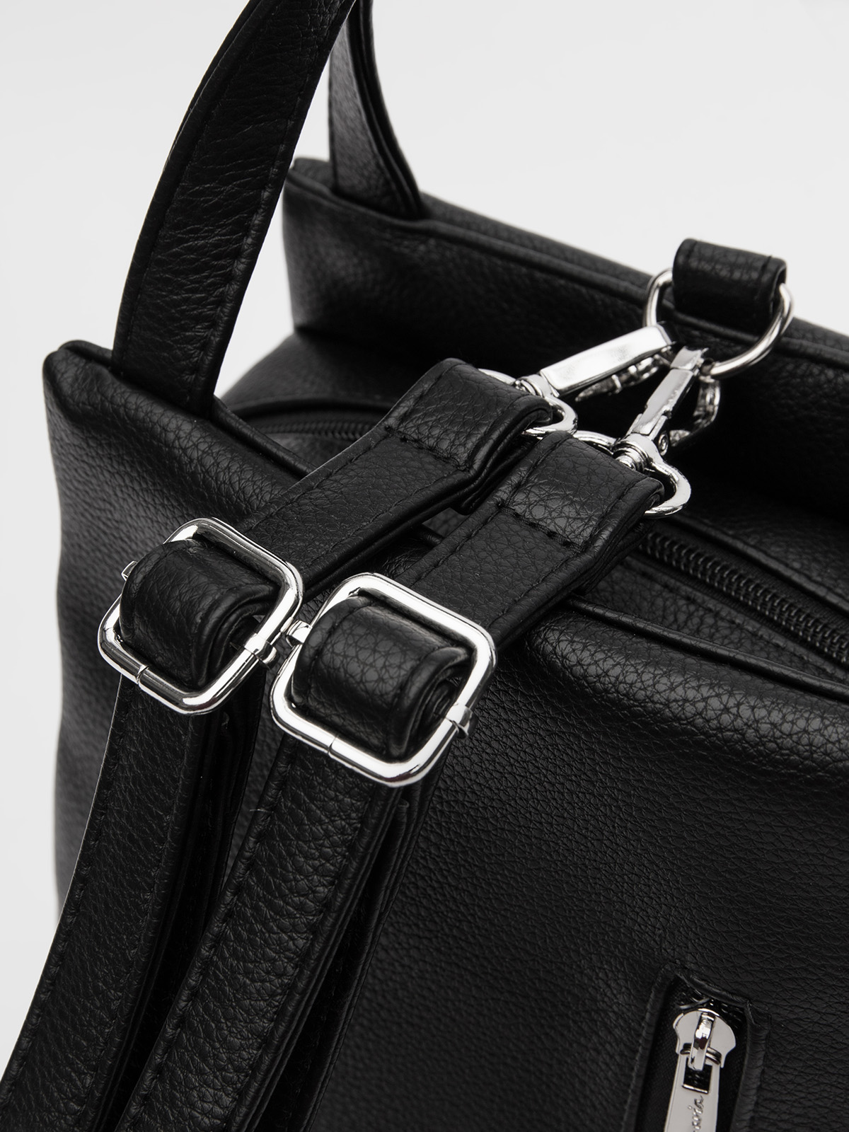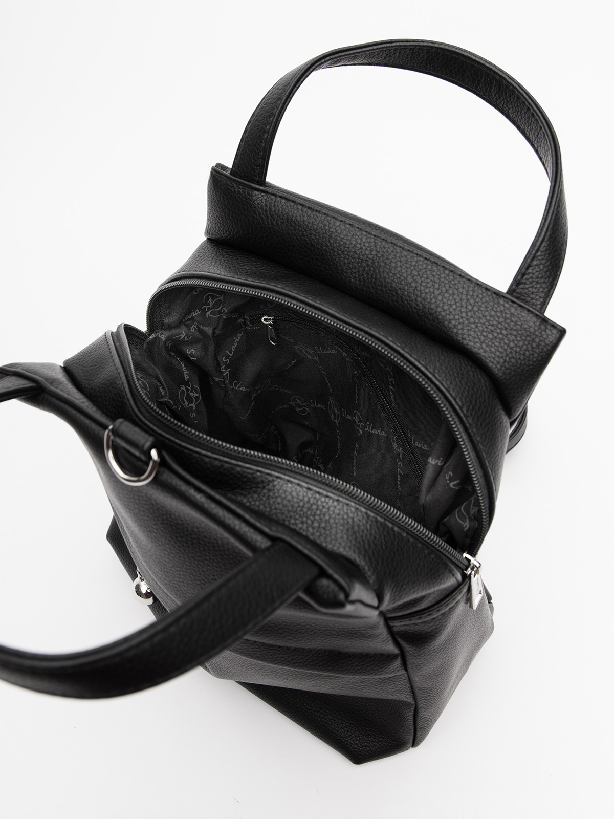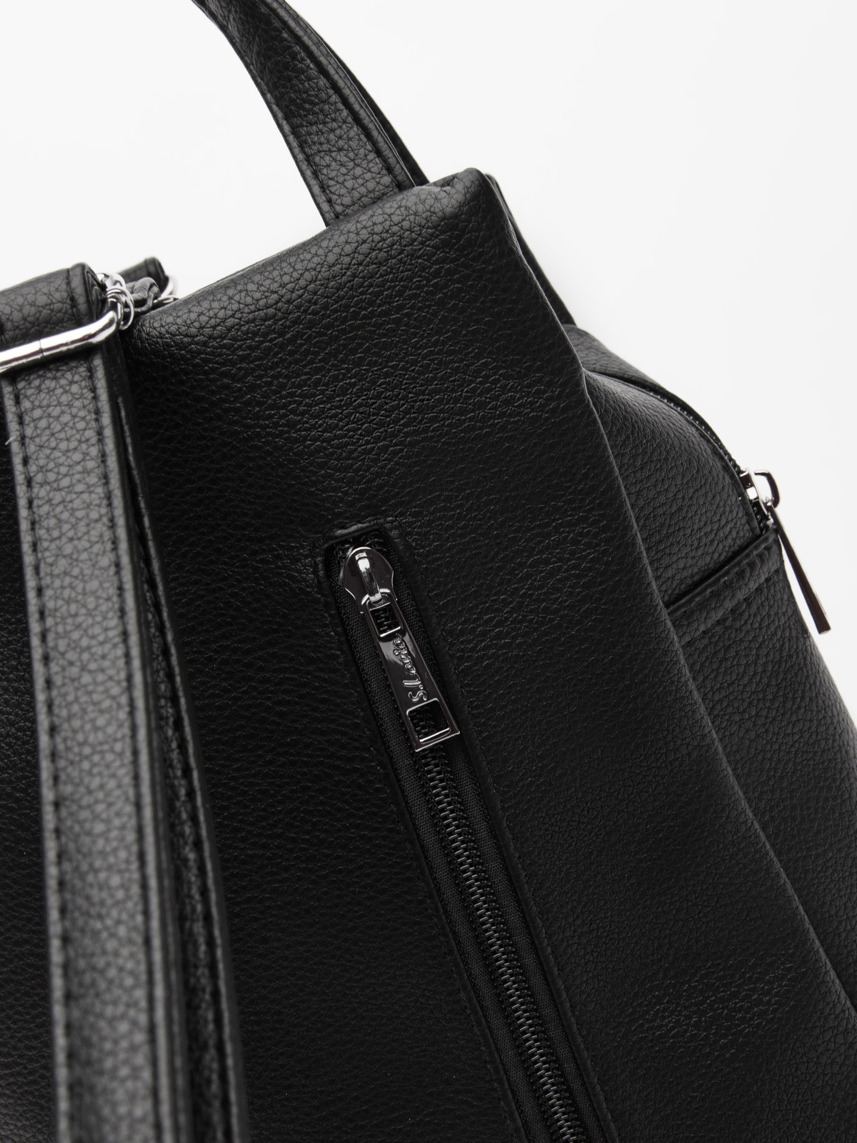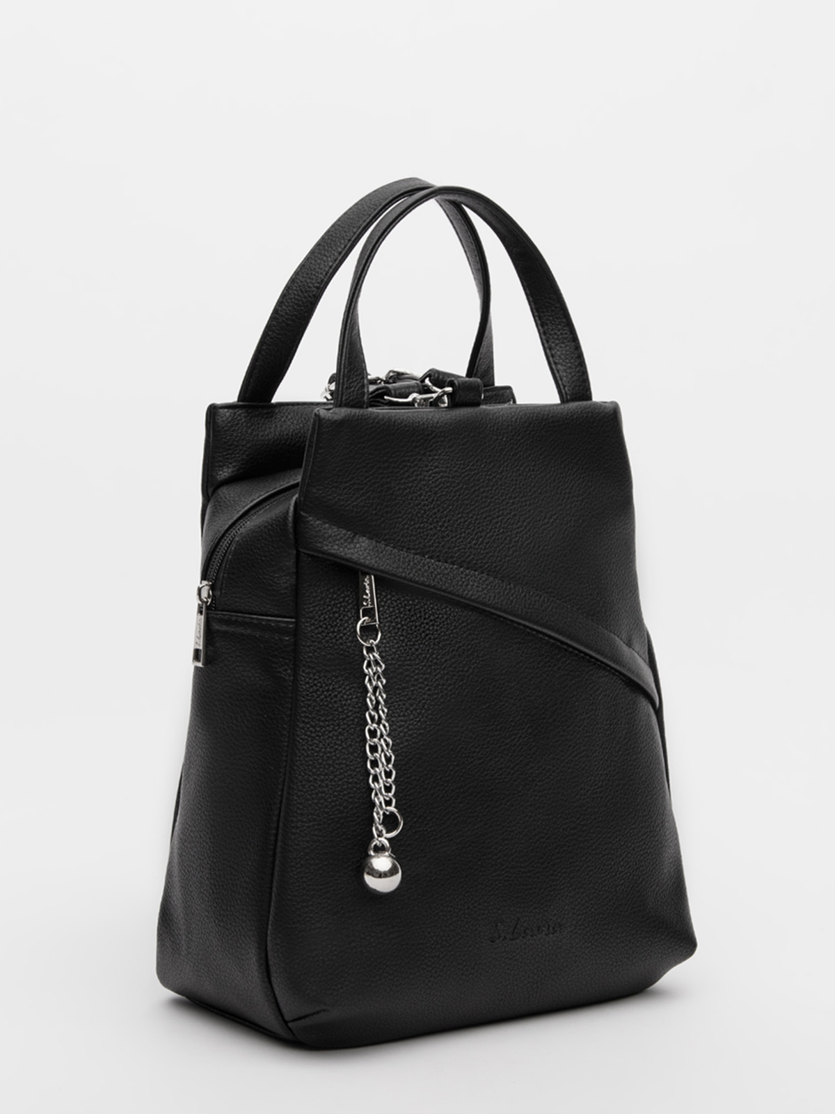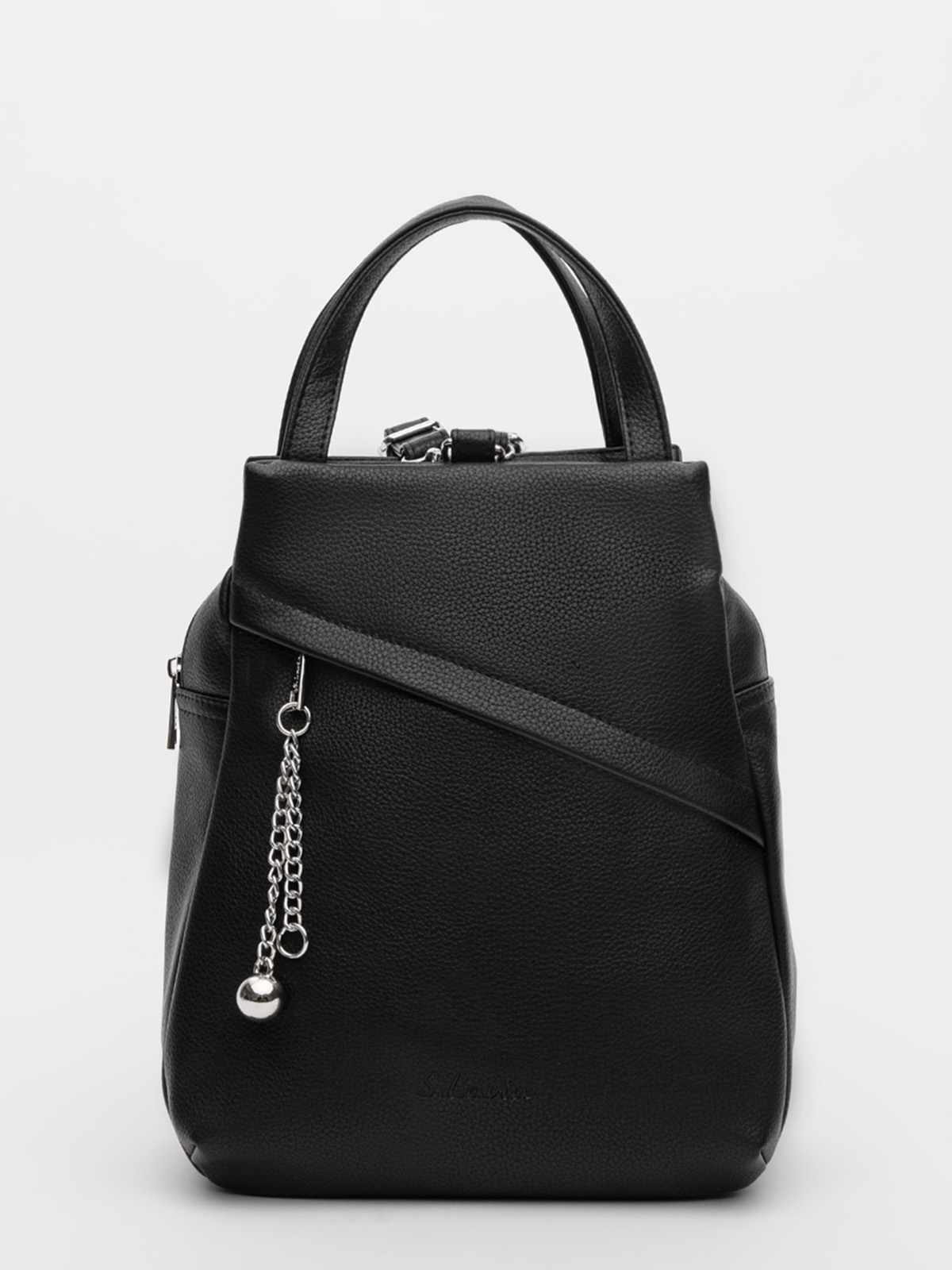 Рюкзак размера М — нестандартный акцент для городского стиля. Асимметричная форма с металлическим декором сразу выделяет эту модель. Передний карман со скрытой молнией сохраняет чистые линии, добавляя внешней сдержанности. Объёмный основной отдел и продуманные карманы вместят всё необходимое, сохраняя аккуратный вид. Носите его классически — на длинных регулируемых лямках, или возьмите за короткие ручки, как элегантный саквояж. Этот рюкзак одинаково органично дополнит и кэжуал-образ с кроссовками, и романтичный наряд, оставаясь удобным для активного дня.