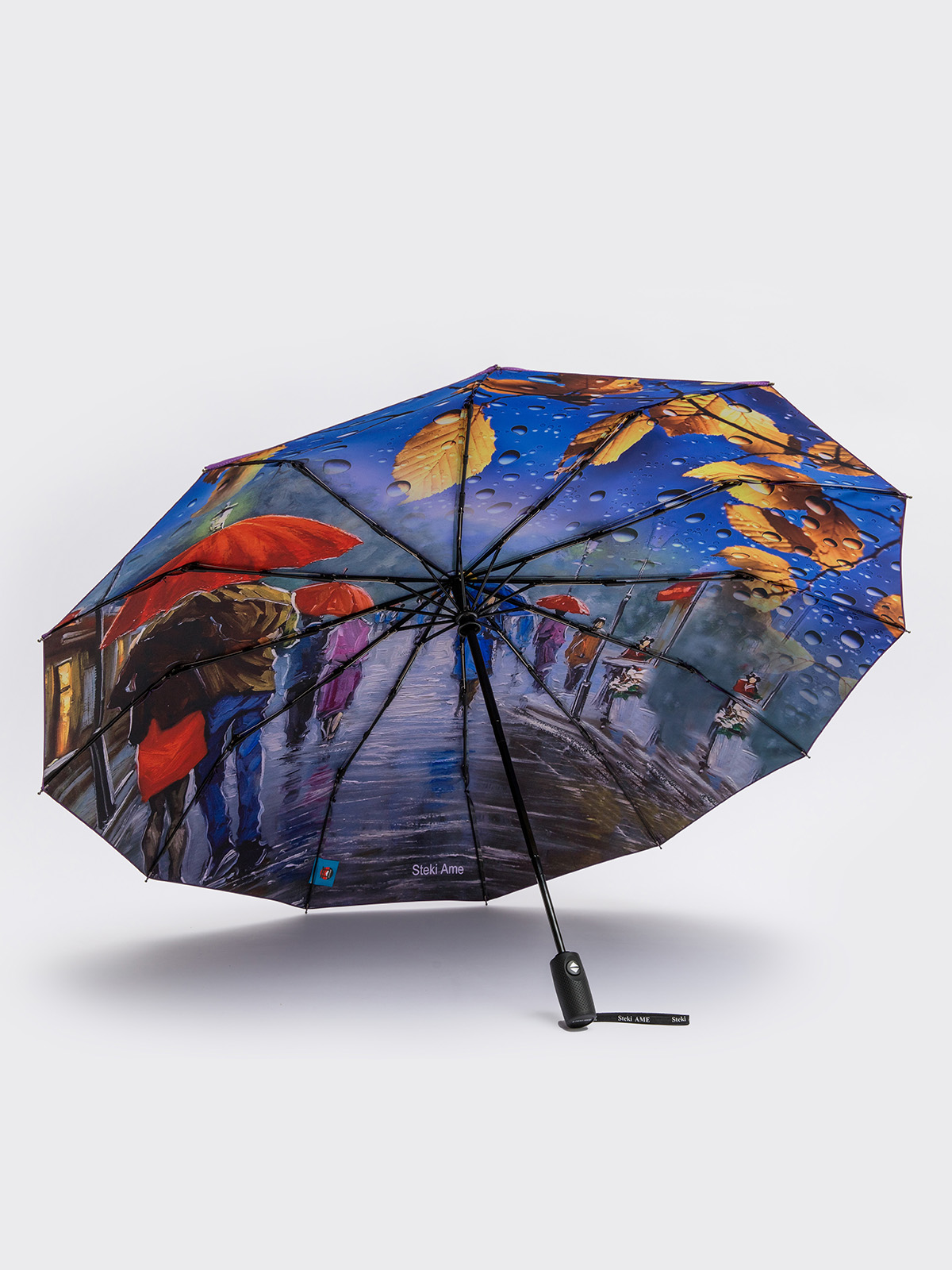 Зонт-автомат имеет 10 ветроустойчивых спиц, пластиковую ручку и металлический каркас. Диаметр купола в раскрытом состоянии - 105 см, длина в сложенном состоянии вместе с ручкой - 30 см. Выручит вас в самую дождливую погоду!