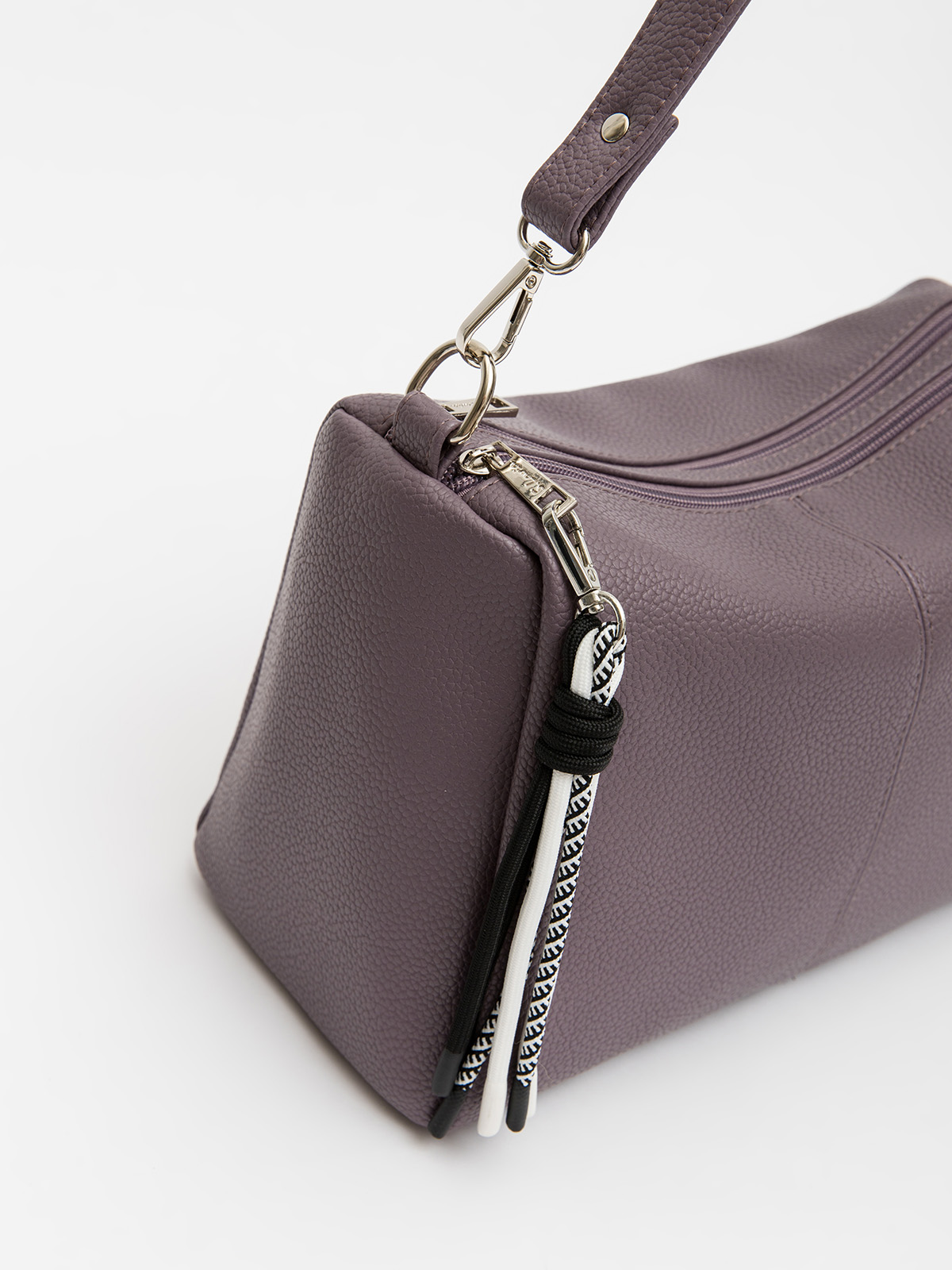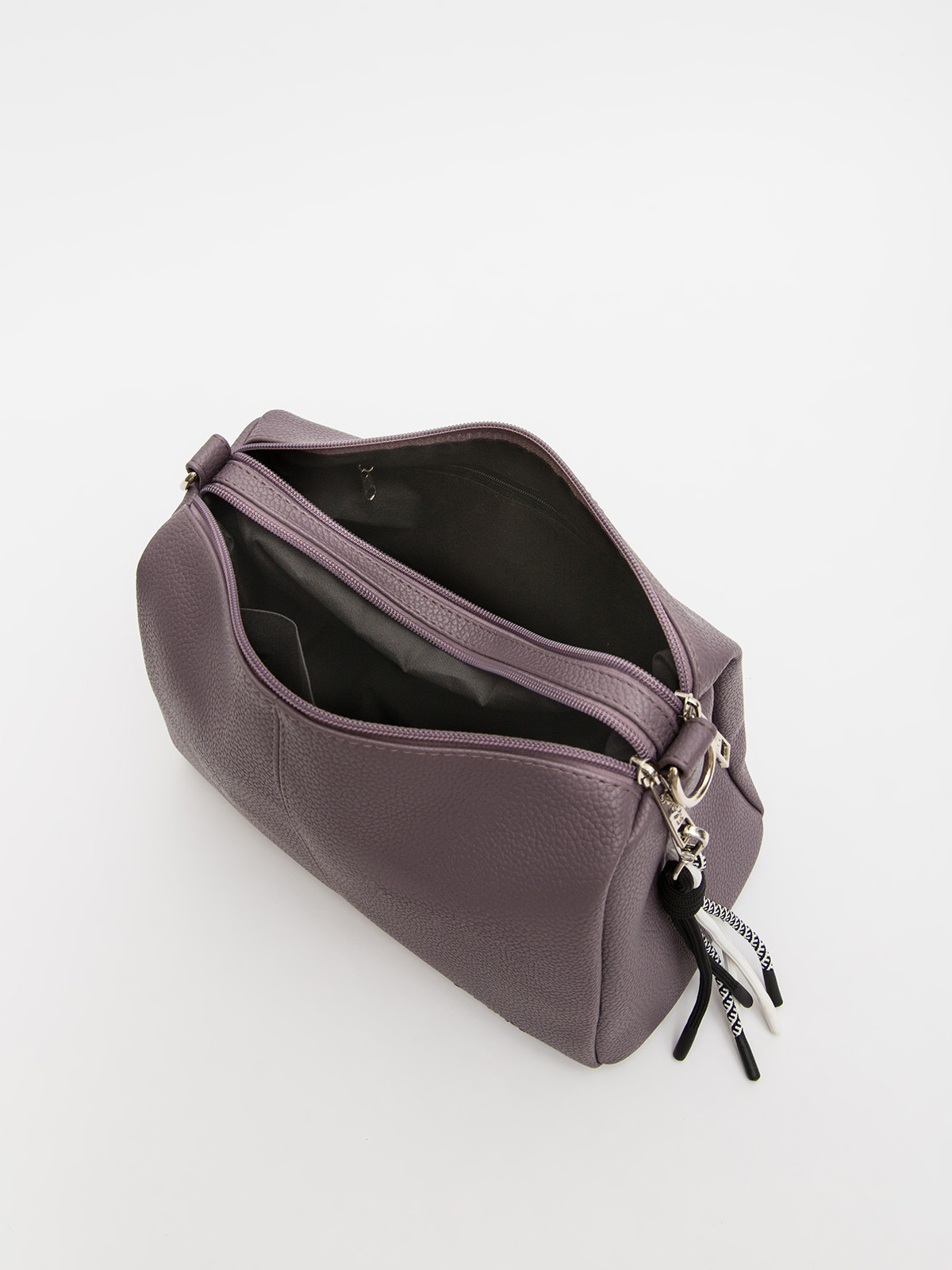 Сумка кросс-боди среднего размера — удобный и стильный аксессуар для повседневного использования. Оснащена двумя отделами на молниях, что позволяет удобно организовать пространство. Внутри расположен небольшой карман для мелочей, а на задней стороне — внешний карман на молнии. Сумка комплектуется длинным регулируемым ремнём на карабинах и короткой ручкой из винилискожи для комфортного ношения.