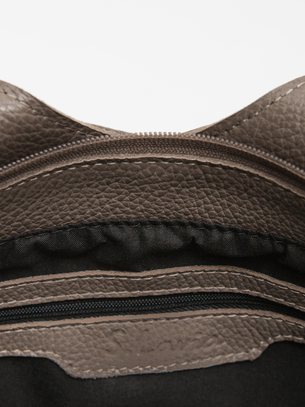 Очаровательная сумка-хобо среднего размера из натуральной кожи с контрастными ручками и регулируемым ремнём на карабинах, которые предлагают множество вариантов ношения — в руке, на плече или через плечо. Просторное основное отделение закрывается на молнию и дополнено двумя практичными карманами для мелочей. Изысканное сочетание фактур и продуманная конструкция делают эту модель идеальным аксессуаром на каждый день — от прогулок до светских выходов.